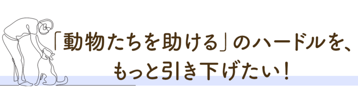 などこうした方々の「本当は何かしてあげたいのに……」という思いを、動物たちやシェルターで日々奮闘される方々に届ける架け橋が必要だと、私たちは考えています。