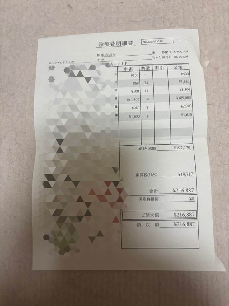FIPのお薬はそのまま続けますが、その他のお薬は少しずつ量を減らして様子見で次の段階に入りました。