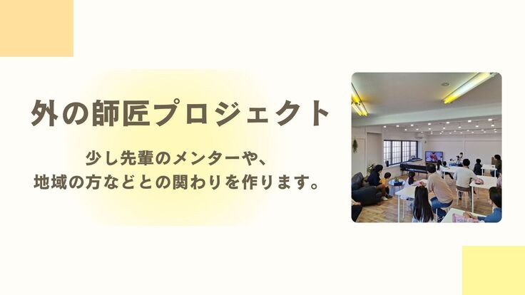 そして第二軸として、オルタナティブ教育を導入した学童保育所の運営、最後に第三軸として、地域の大人や大学生、地元の企業、専門性をもつ職業人を巻き込んだ体験型事業を開始しはじめました。