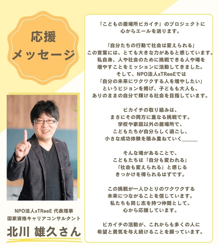 ノーススター合同会社です。「こどもの居場所ピカイチ」を運営しています。