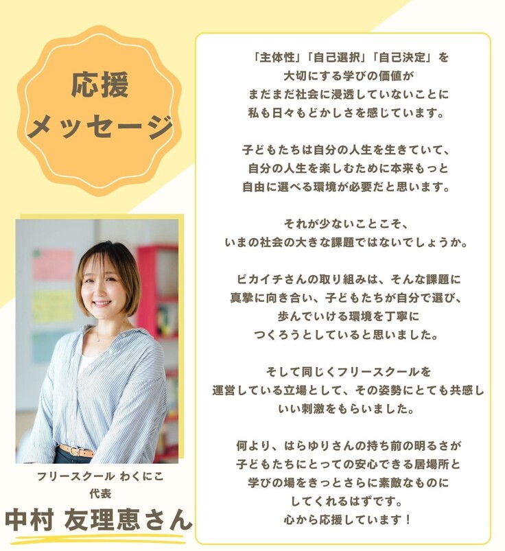 私たちの理念・考えに共感・共鳴してくださった方々からの応援を、心よりお待ちしています。
