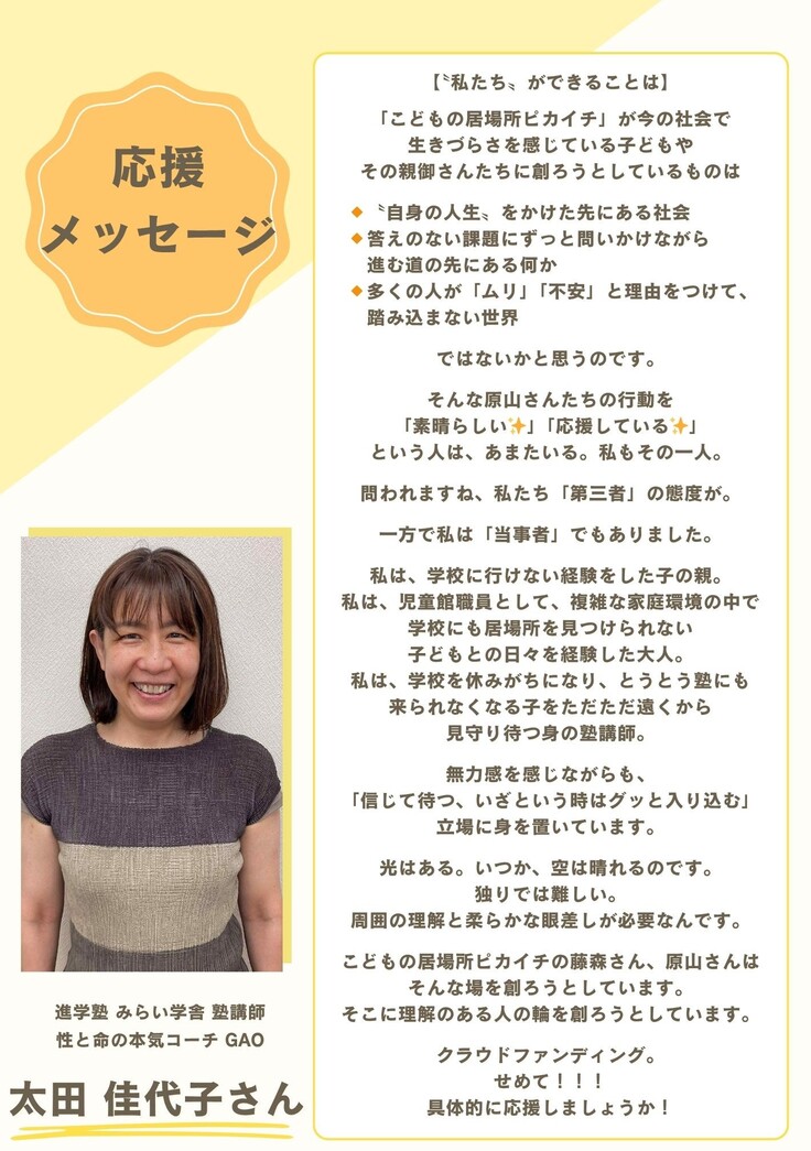 だからこそ私は「学校でも家庭でもない第三の居場所を作りたい」「学校の先生でも家族でもない第三の大人でありたい」と思うようになりました。