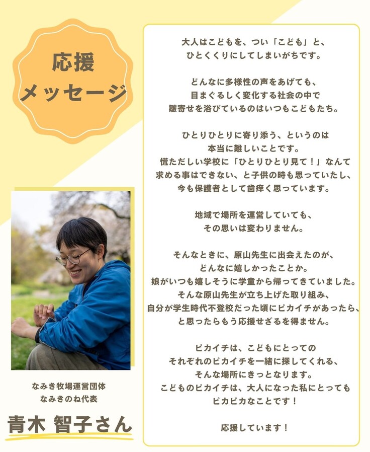 同じような支援に携わる方からの力強いメッセージが、私たちの活動の励みになります。