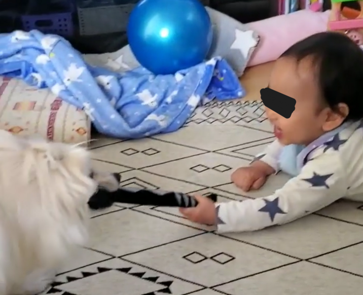 最近はハクの体力がなくてできていないけど、今でもタオルの引っ張り合いっこをして遊びます✨
