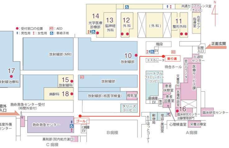 一番遠い病棟、C病棟までの乗車の様子をご紹介します。