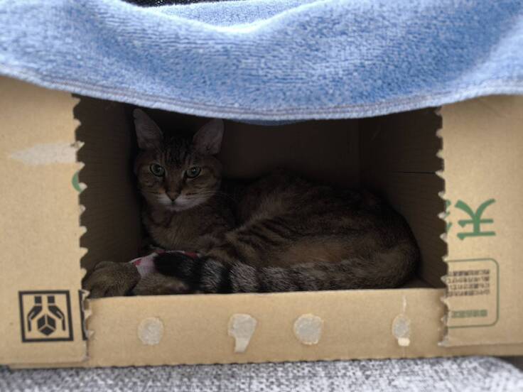 ↓ケージより段ボールが好き
