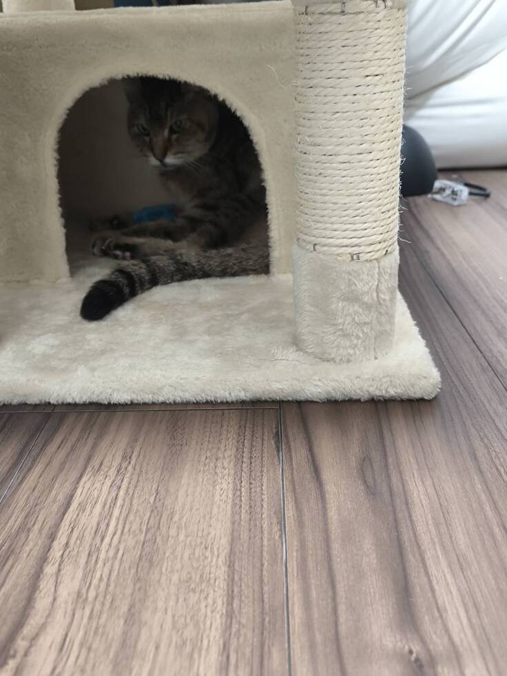 今日初めてキャットタワーに入ったので記念に写真貼ります😊