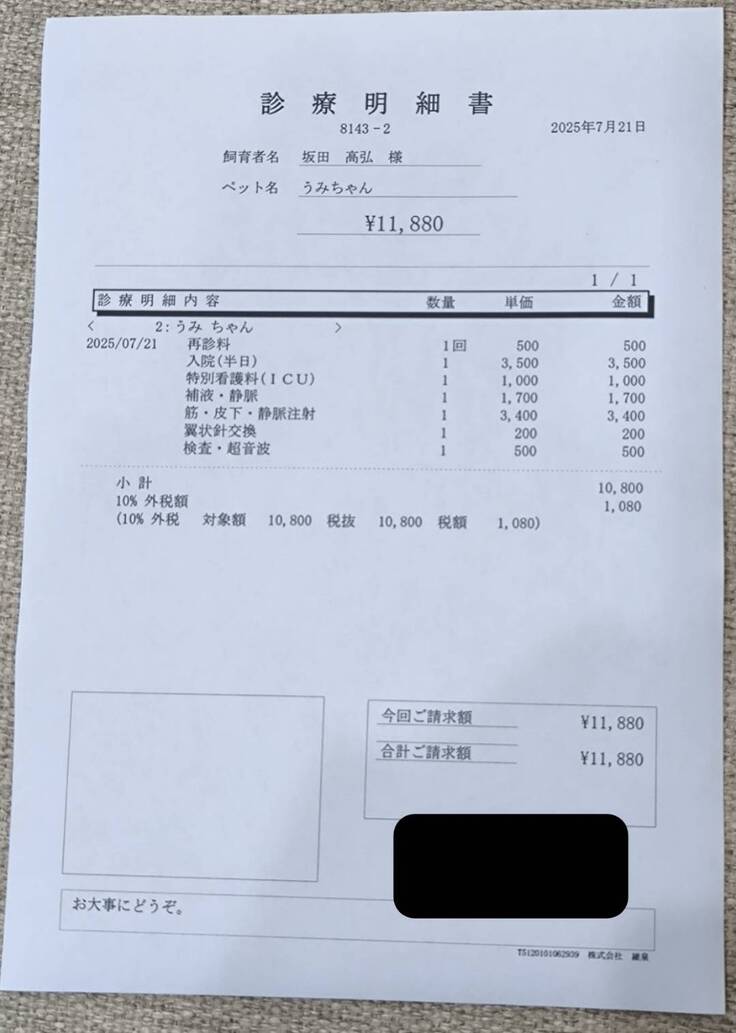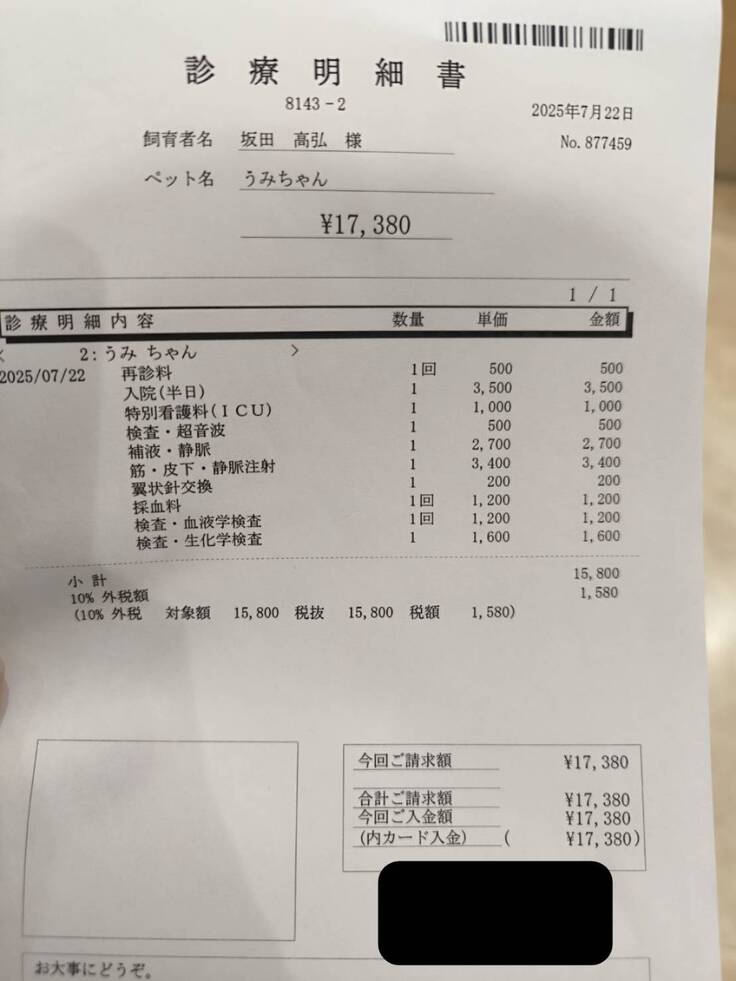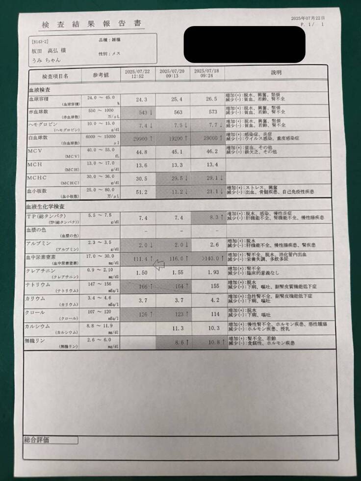 また、血液検査の結果は前回からほとんど改善しておらず、もしかすると血中尿素窒素は下げ止まりかも、、、?と言われてしまいました。