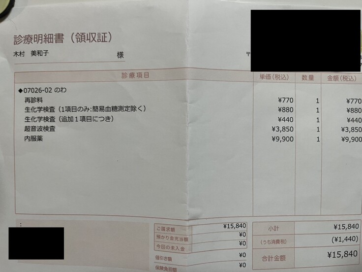 検査が一つ少なかったので金額は先月より少ないですが、お薬は同じです。