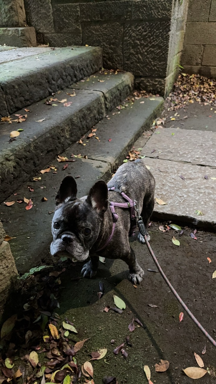 それでも外の空気を感じさせてあげたくて、夜になって気温が少し下がってから短いお散歩に出かけました。