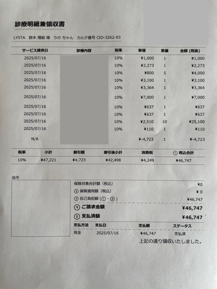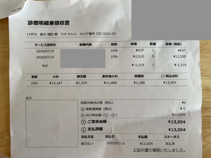 看護師さんも負傷してしまってそれどころでなかったので、診察中の写真は撮れませんでした💦
