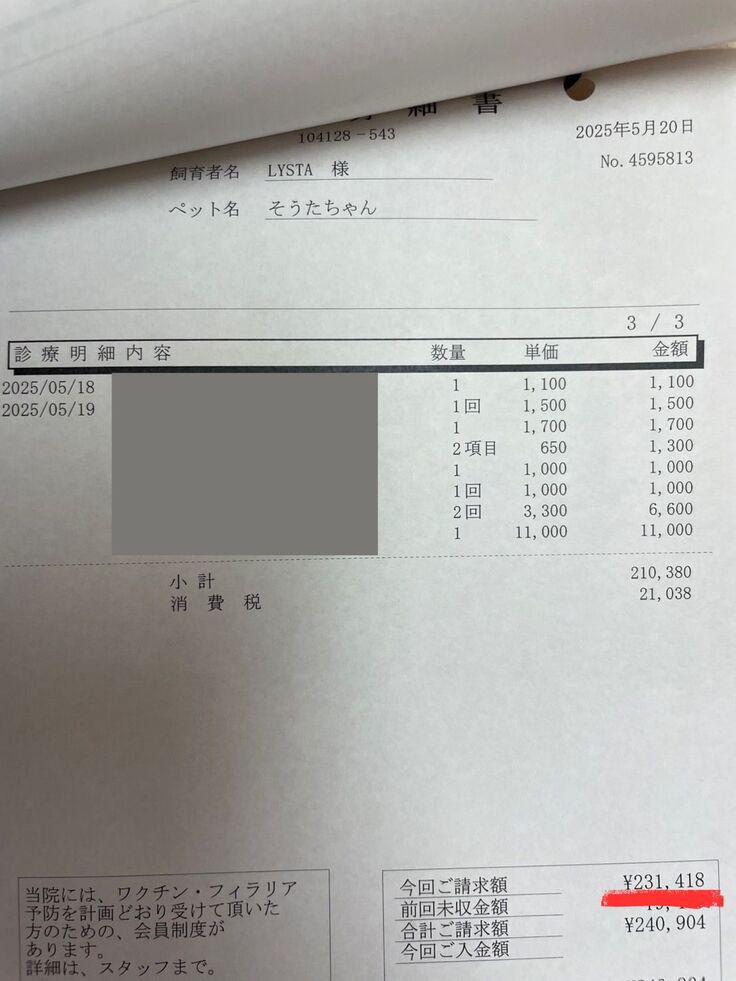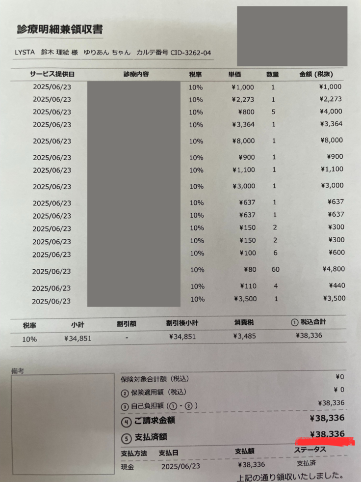 ▼そうたくん、最後の医療費です。