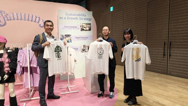 なんと、Sustainabilityセクションにて、LinkT ProjectのTシャツ試作品が展示されました!