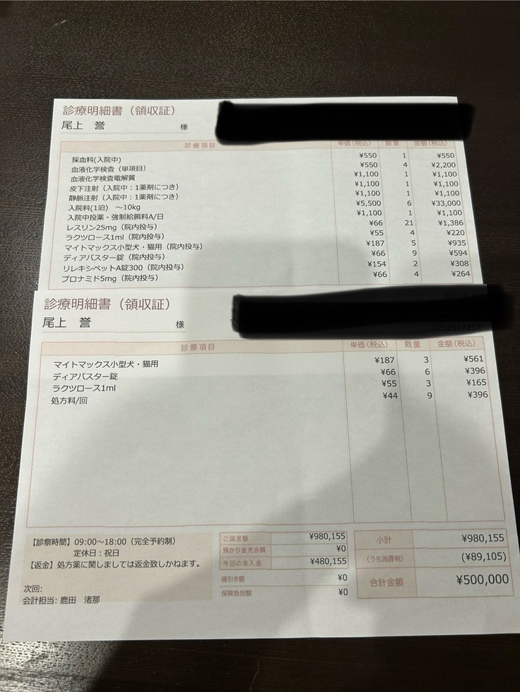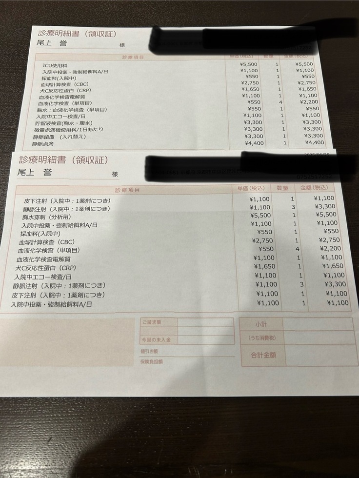 ページ上に掲載している診断書や診療明細書などの資料は全て動物病院から掲載の許諾を得ております。