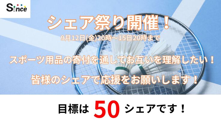 9月12日20時から15日20時、シェア祭りを開催のお知らせです!