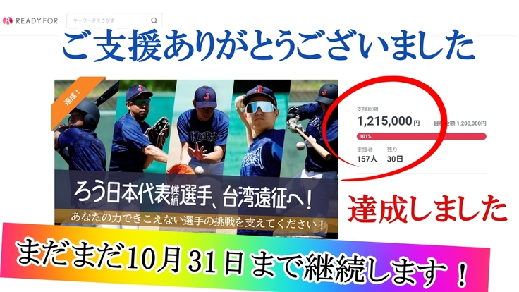 クラウドファンディングの終了までは、まだ期間が残っています。
