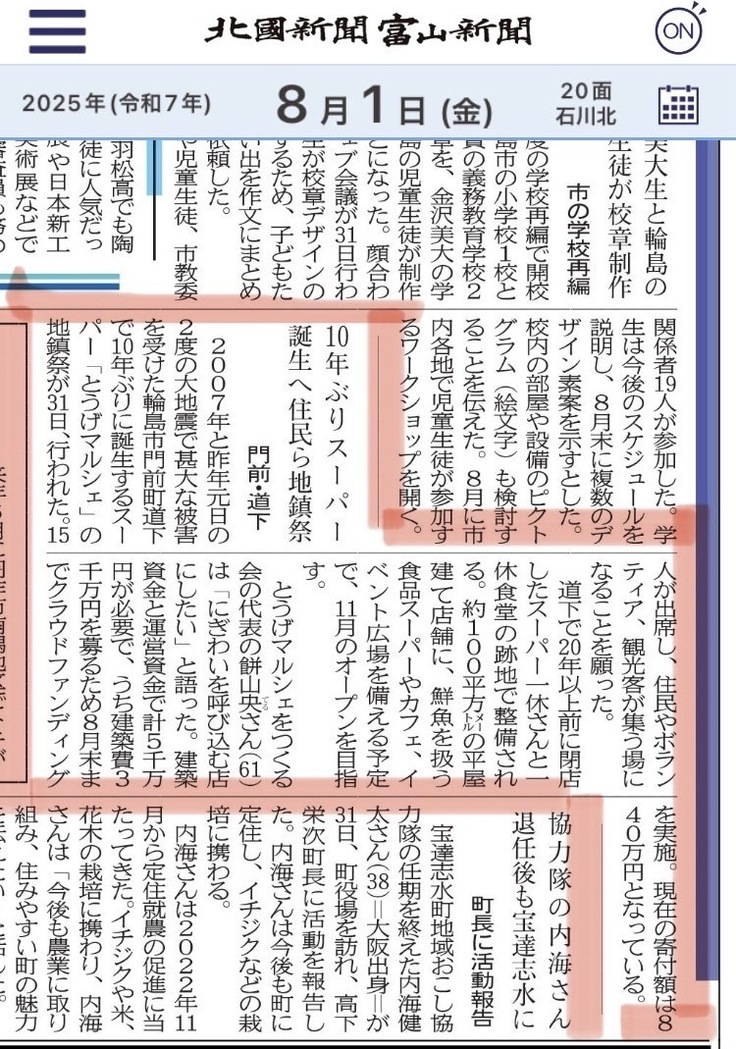 このたび、私たちの地鎮祭の実施と、現在挑戦中のクラウドファンディングの進捗について、北國新聞にてご紹介いただきました。