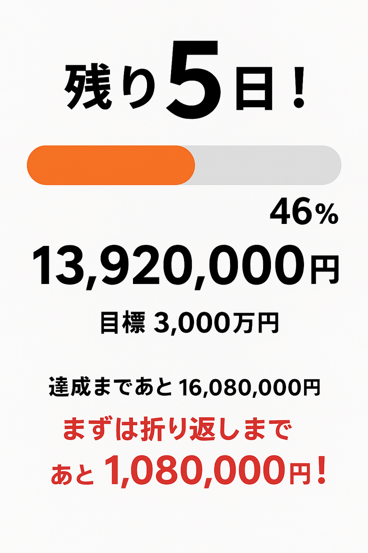 クラウドファンディングも残り5日!