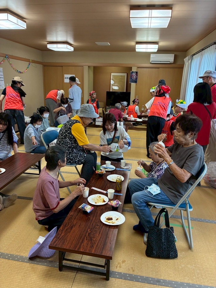 とうげマルシェは、防災食のお供に、あんみつや味噌汁、茶碗蒸しを振舞いました。