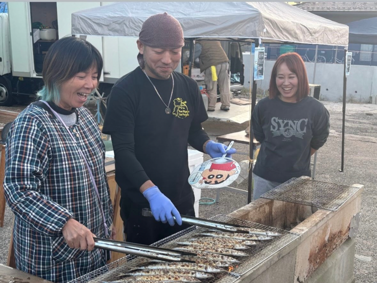 発災当初から炊き出しに来てくださっている、宮城県石巻から、女川で取れた秋刀魚をもって、道下にきてくださいました。