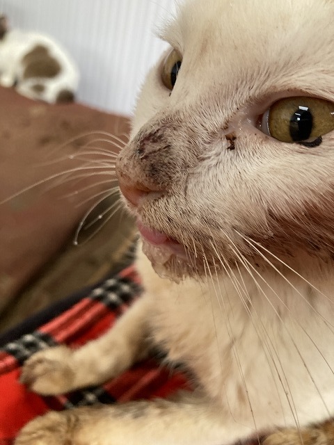When he has arrived, Jinji could only manage a few ships of wet food. I thought, “Once his teeth are fixed, he’ll be able to eat well again.” But when the blood test results came back—Jinji was diagnosed with FIV (Feline Immunodeficiency Virus), commonly known as “Feline AIDS.” This meant he could not undergo anesthesia for dental surgery. The only thing we could do for him was to give pain relief and anti-inflammatory injections to make him more comfortable.