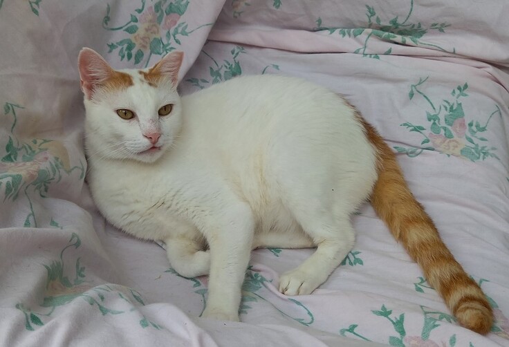 Jinji weighed less than 2 kilograms (4.4 lbs). He was nothing but skin and bones. But with emergency care, he regained his appetite a little and gained a few hundred grams. Despite his frail body, Jinji was remarkably bright and affectionate. He could only come out of his cage when there were no other cats around, but whenever I called his name, he would run to me and curl up on my lap—such a loving soul, hard to believe he had spent so many years in a shelter.
