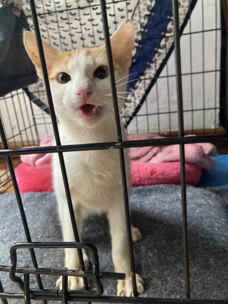 治療を受けてご飯も食べれるようになった。でもまだミャオ―の声が出ない。。