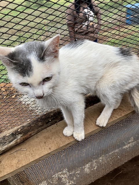 最近保護された若い母親猫、おそらく生後7か月くらい。2匹の子猫を失い猫風邪をひいて弱っているところを助けれらた。