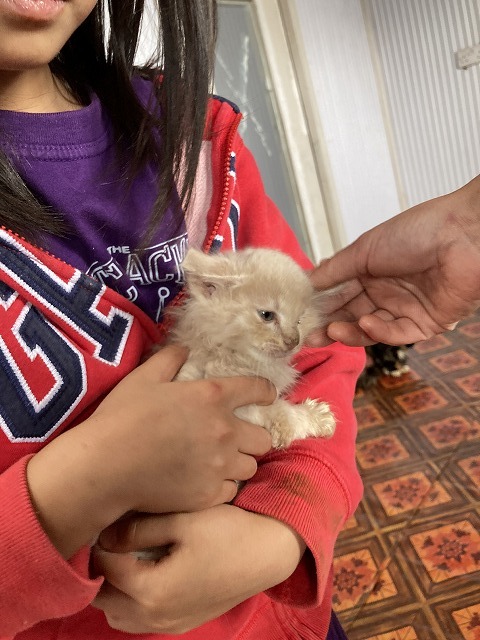 子猫まみれの時間でした(左)この人懐っこい白黒猫は飼い主が引っ越して元の家に残されていた猫、早く良い里親がみつかるといいね(右)