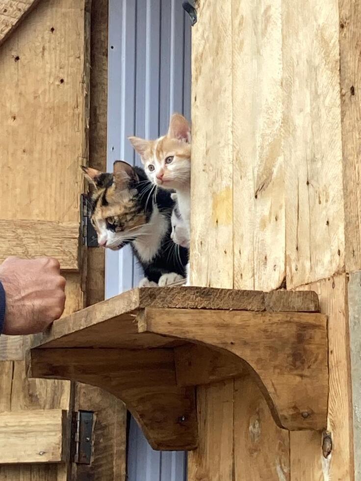スペースの関係で木製の小屋に移された母猫と子猫