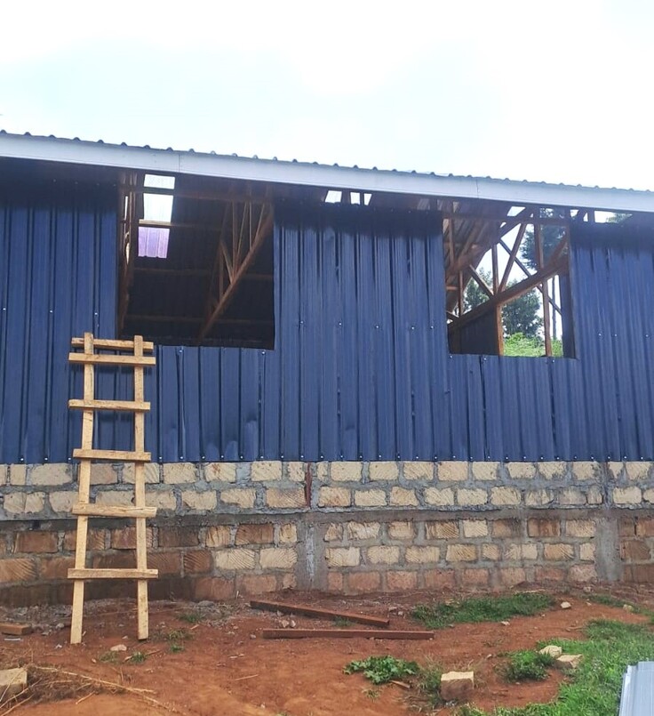 先週から今週にかけて、シェルターの屋根とトタンの外壁が無事に完成しました。現在は、内部の壁に断熱材を入れたうえでプラスチック板を貼る作業が進められており、いよいよシェルター完成が近づいてきました。