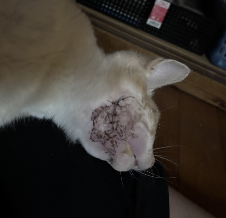 (まだ、ワイヤーで固定していて術後の痛々しい姿のラテ)