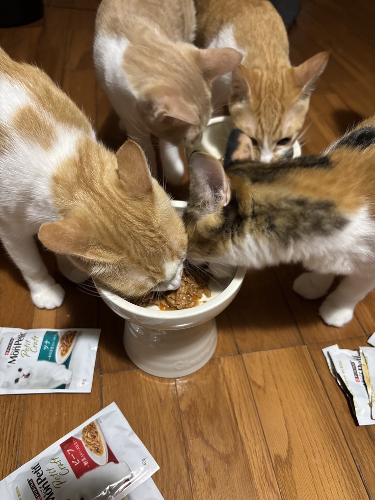 初めてのごはんにみんな興味津々で、目をキラキラさせながら集まってきた姿がとっても可愛かったです❗️