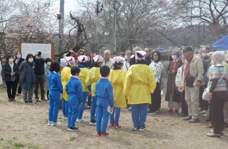 開花に合わせ、地元の小学生が観光客に 地元の桜保護団体や小学生、行政が一体