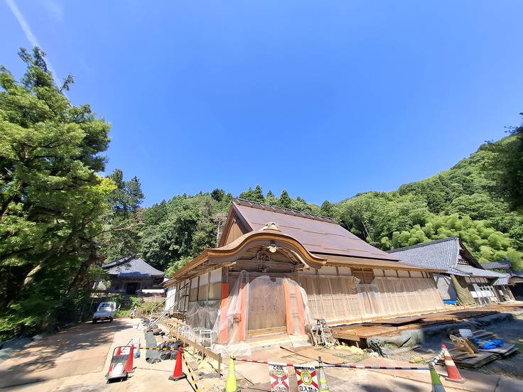 現在は本堂と同規模の大規模修理となる「庫裏」の素屋根足場建設に向けて準備工事を行っております。