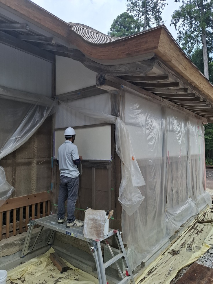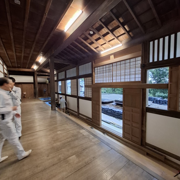 本堂は来月の引き渡しに向けて、仕上げの最終段階に入っております。業者の方々は、設えの細部確認や点検作業を重ね、気の抜けない日々を過ごされています。