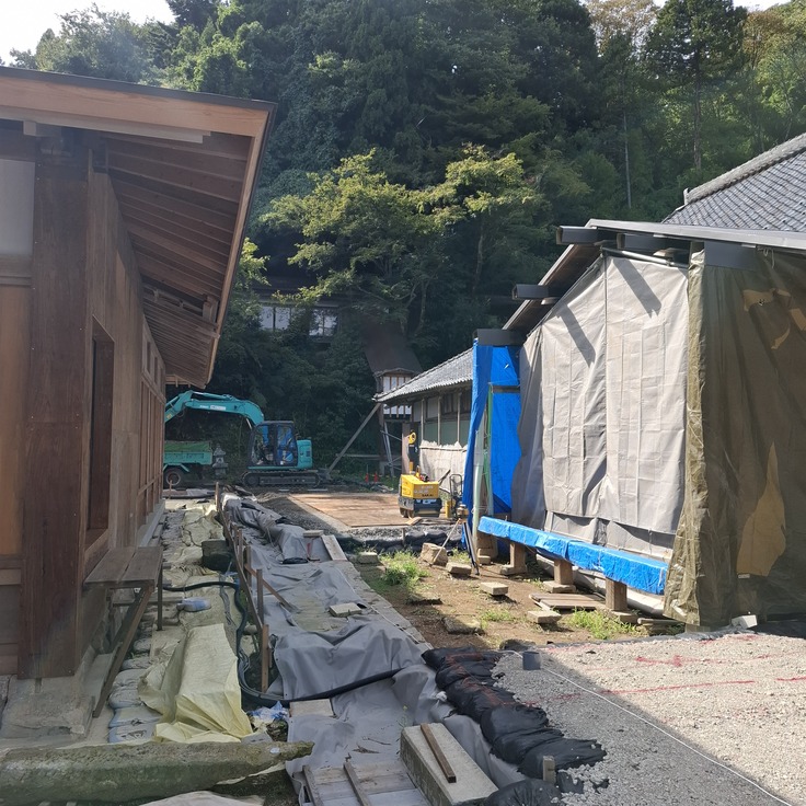 現在は庫裏に向けての土木工事が行われ、難しい基礎工事を経て、確かな土台を築き上げているところです。