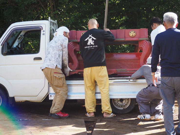 修理が完了した本堂へは、大きな什物や仏具を慎重に運び込み、