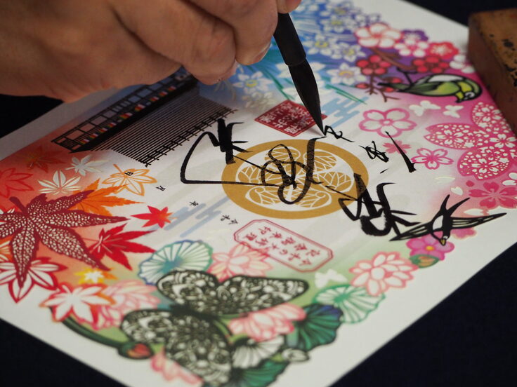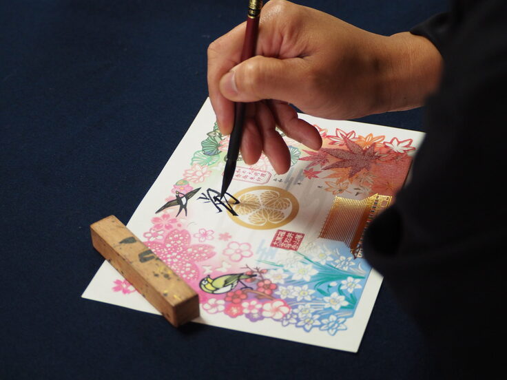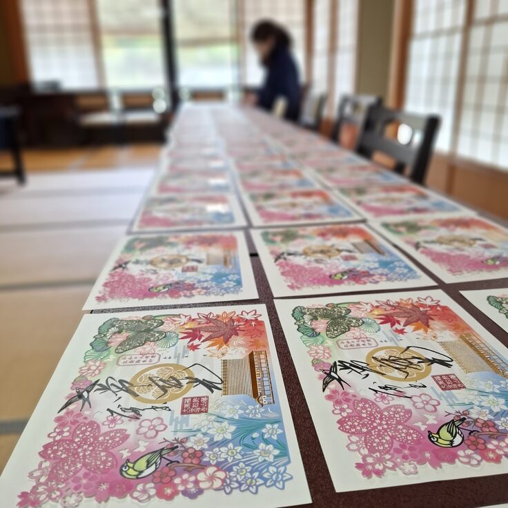 本日は出来たてほやほやの「越前和紙切り絵御朱印」に真筆書入れを行いました。