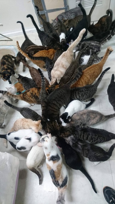 野良猫の不妊化が終わった地域に遺棄があり、なかなか完了しない。また、多くは子猫であるため、夜は自宅での授乳が必要。