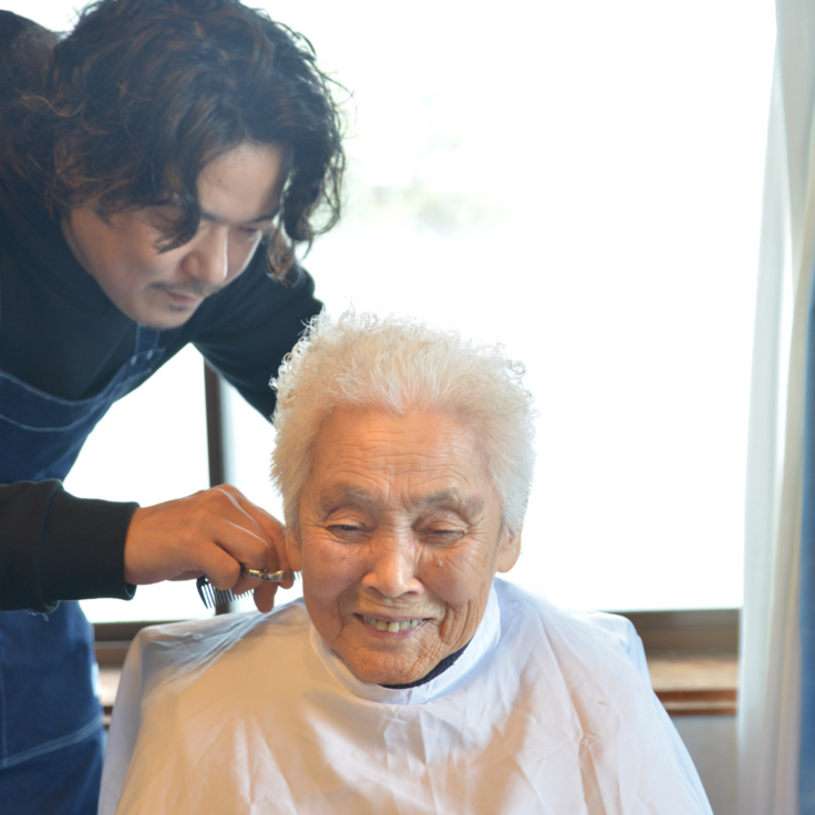 高齢者の方、障害のある方、病気やケガで外出が難しい方のご自宅や施設・病院を訪問し、髪を整えるお手伝いをしています。