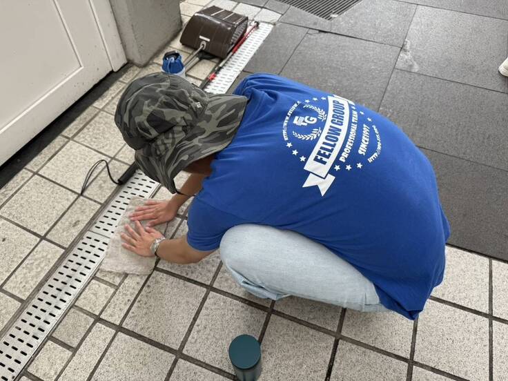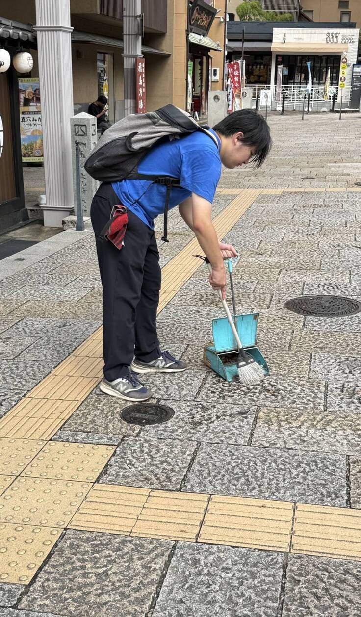 清掃の際、お店の方に「お店の前を掃除させていただきます」と声をかけると、