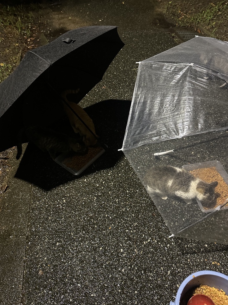 雨雲の合間に野良ちゃん達のご飯行くつもりが雨雲の合間がなくて、小雨の今だっと思いやってきました