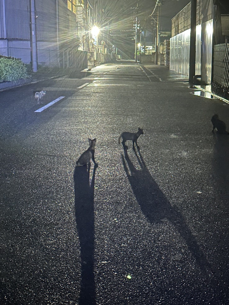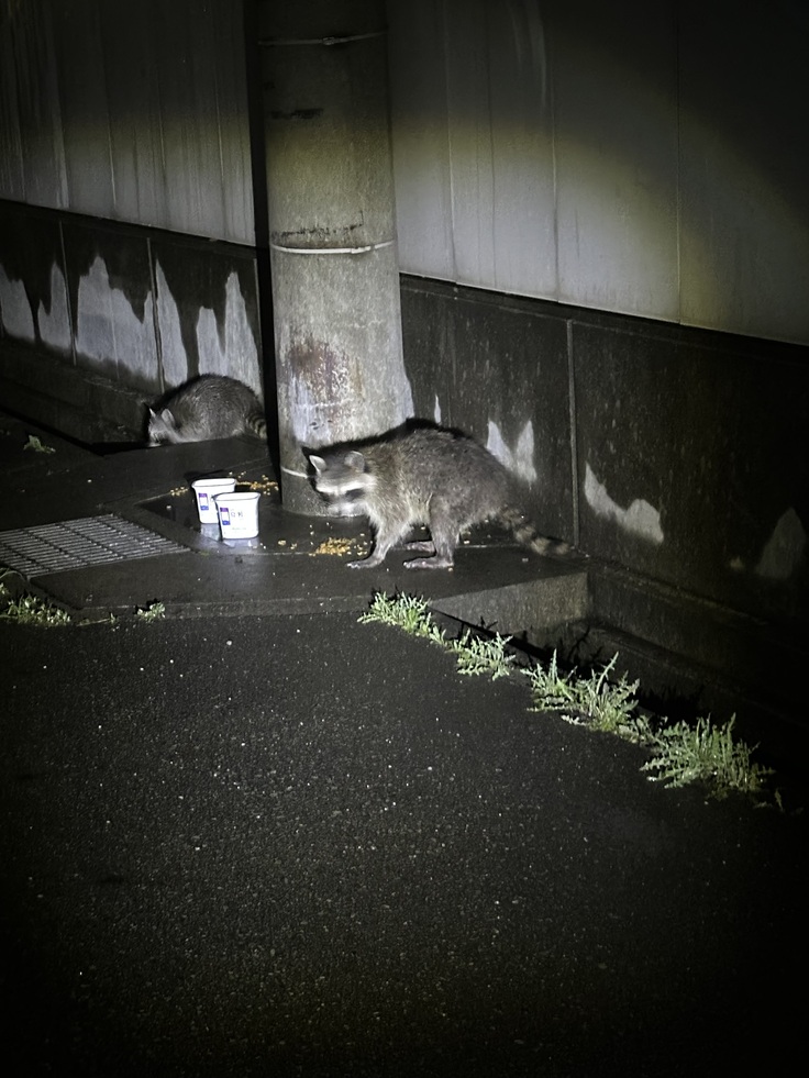 埠頭ではタヌキも子供を5匹連れて来るようになって先にアライグマとタヌキにご飯をあげないと猫ちゃん達のご飯横取りされてしまいます💦