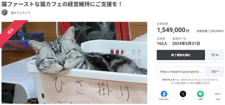 今回のプロジェクトでは、猫カフェの経営維持のための資金を募らせていただきます。