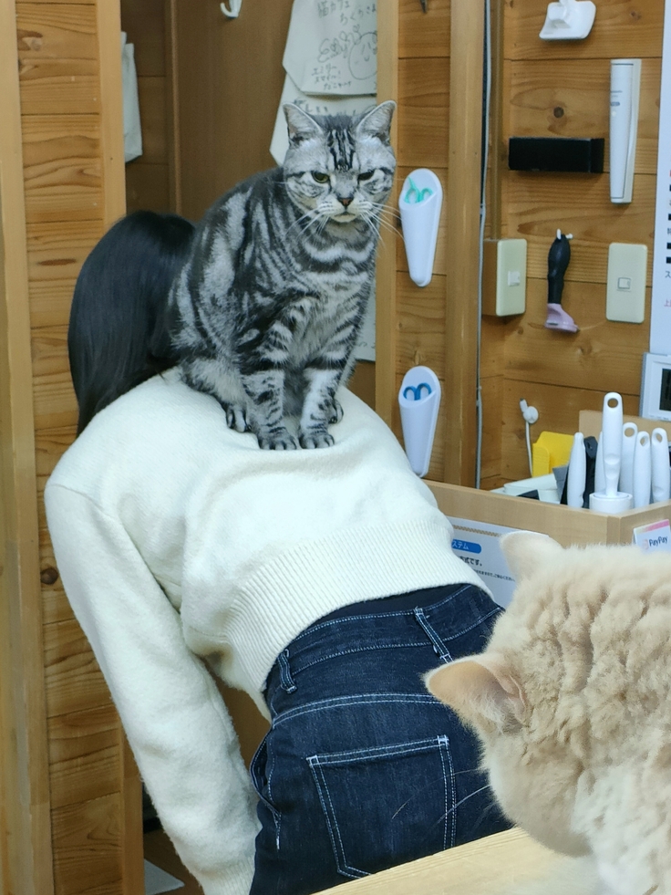 そして、当店は「猫ファースト」なお店です。お客様からもスタッフからも一切嫌なことをされたことがない猫たちが穏やかな表情を見せてくれます。