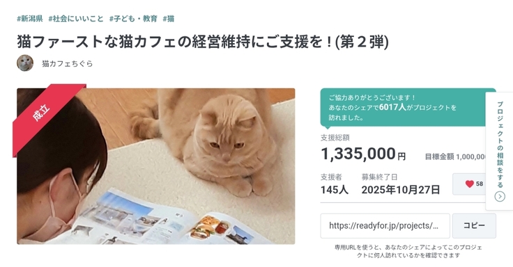 猫ファーストな猫カフェの経営維持にご支援を !
