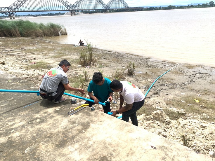 この新しい設備は、トレーニングと共に、現地のボランティアへ稼働と管理を移行しつつある段階です。現在ザガイン市中部、ShweKhonGyi僧院内避難民仮設住宅に同様の設備を建設中です。また、ザガイン市北部で3000人が居住することとなる仮設住宅にも導入予定です。これらによって、避難民キャンプや市民生活をさらに広く支えることができる見込みです。