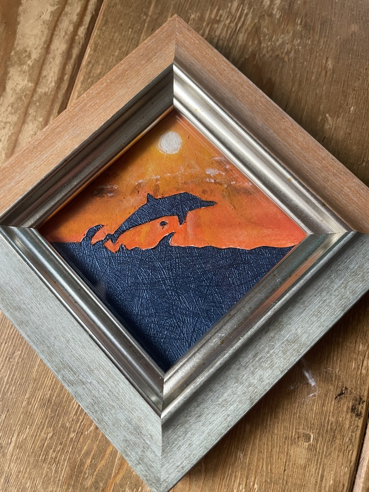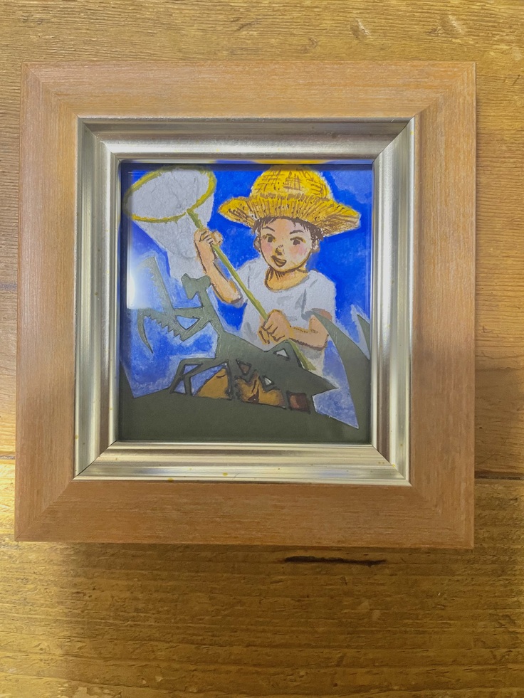 岳流も納得のいく作品ができたようで満足げでした!私は額縁屋さんからお裾分けいただいた厚紙を使った小さな作品を作りました!