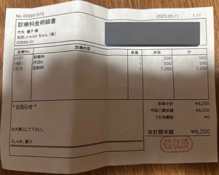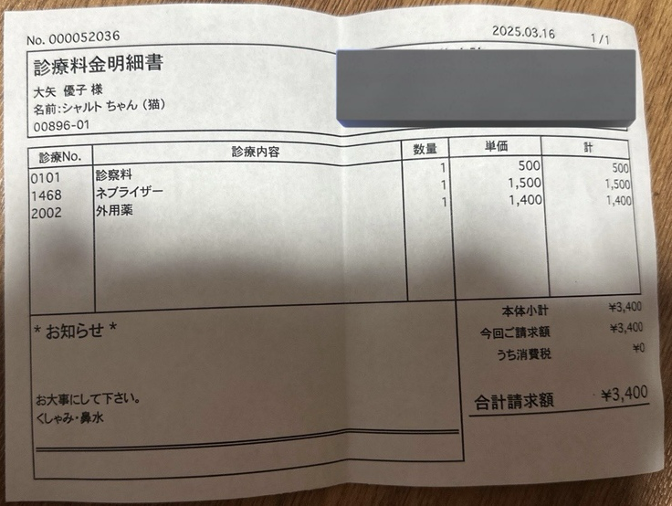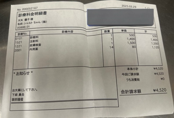 数日前からくしゃみが出始め、病院に連れて行きました。具体的に診断はされず、様子を見ることになりました。